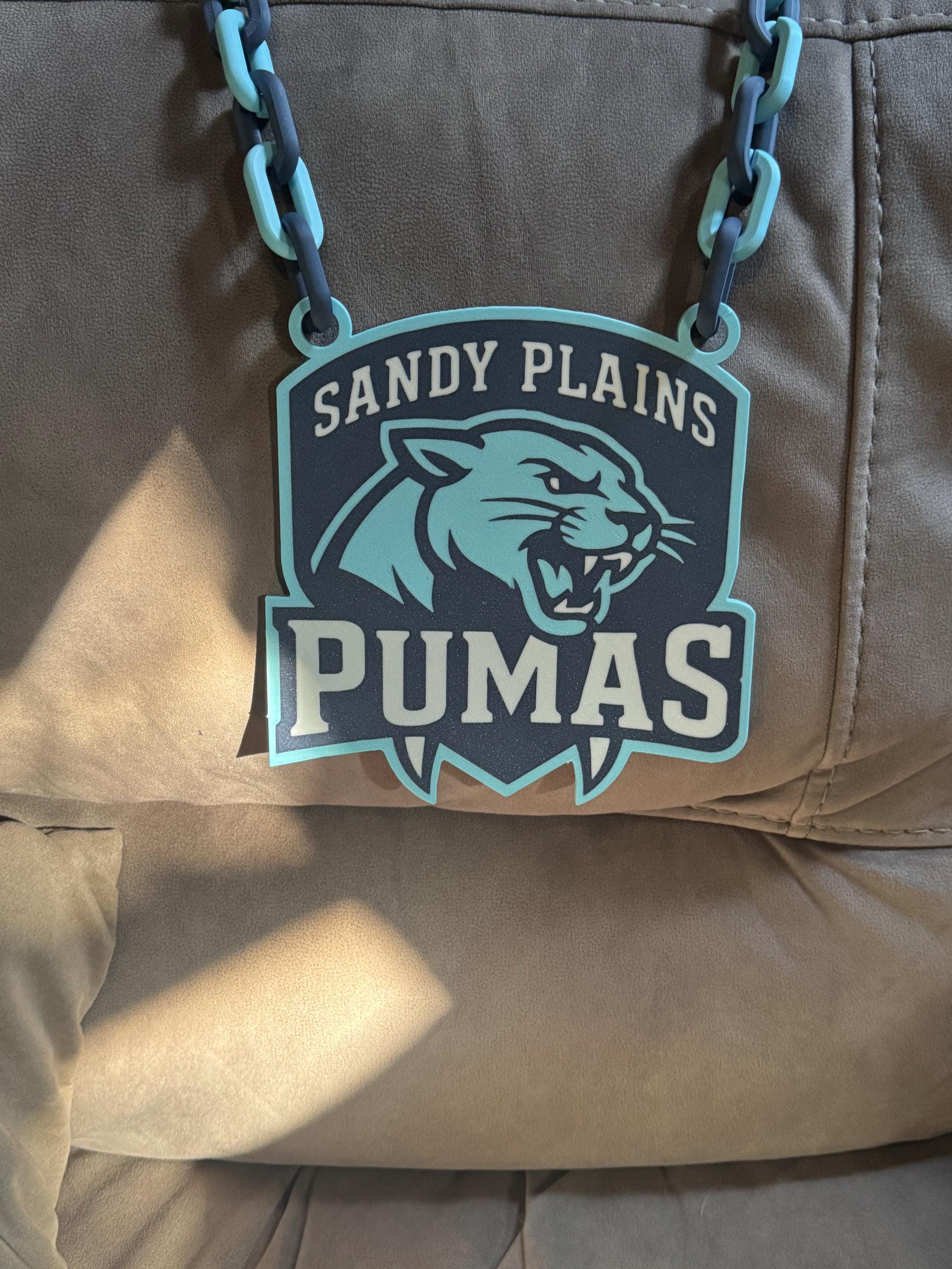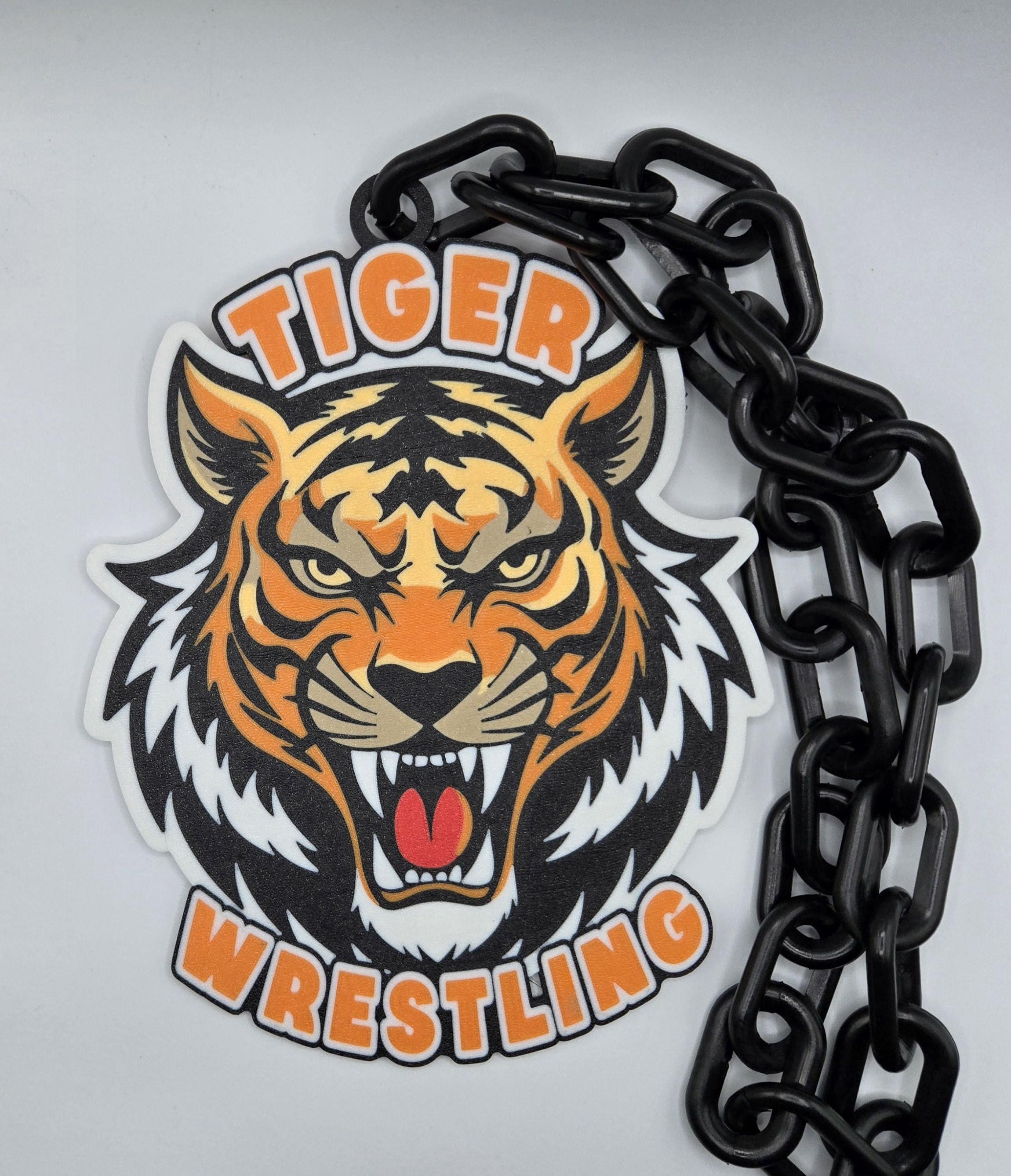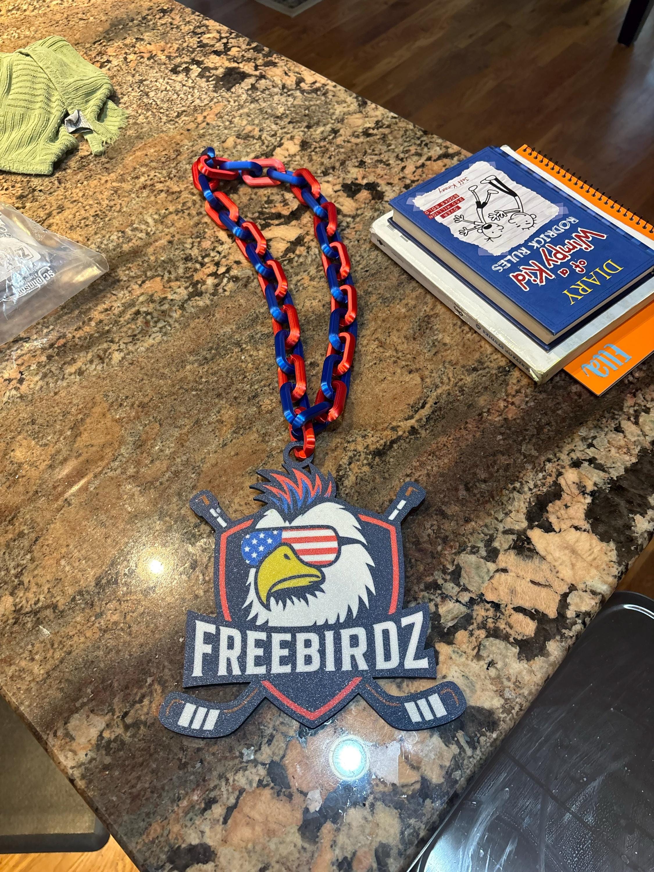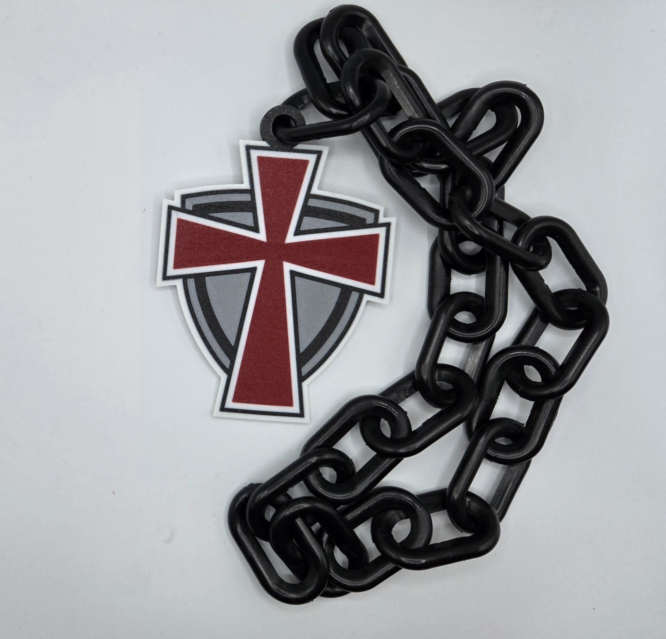 Custom Fan Chain Giant Logo Necklace, Sports Homerun Turnover Jumbo Oversized Chunky Swag Rally MVP POTG Award Baseball Football Show your team pride with a giant logo Fan Chain! You've seen them everywhere at sporting events and now you can have your own custom made Fan Chain. Just send a picture and I'll do the rest. It can be just about anything! The standard chain is black and 36" long with 2" links. Logos will about 6" at the widest or longest point. Thickness is 1/8". Material is 3D printed plastic.