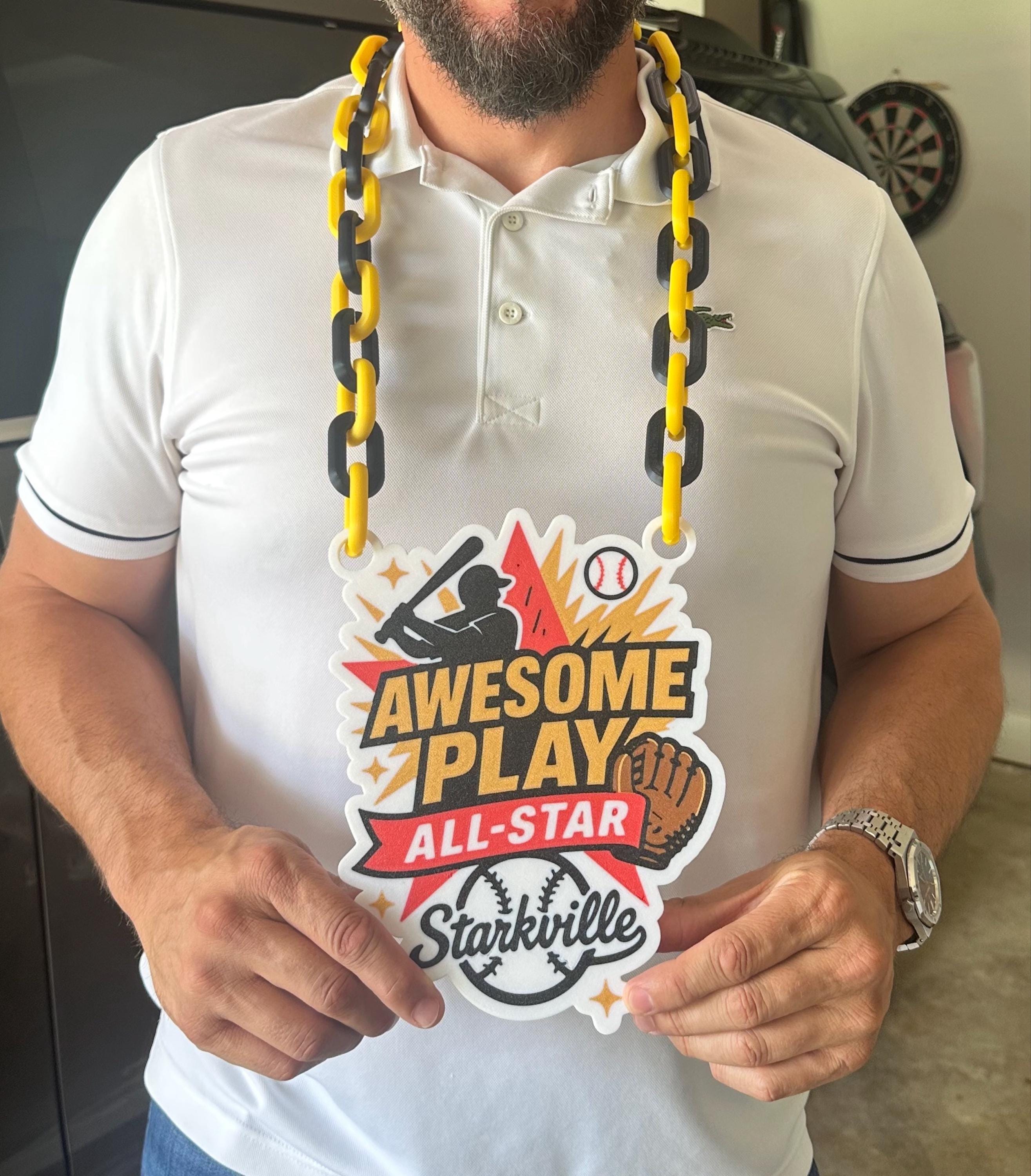 Custom Fan Chain Giant Logo Necklace, Sports Homerun Turnover Jumbo Oversized Chunky Swag Rally MVP POTG Award Baseball Football