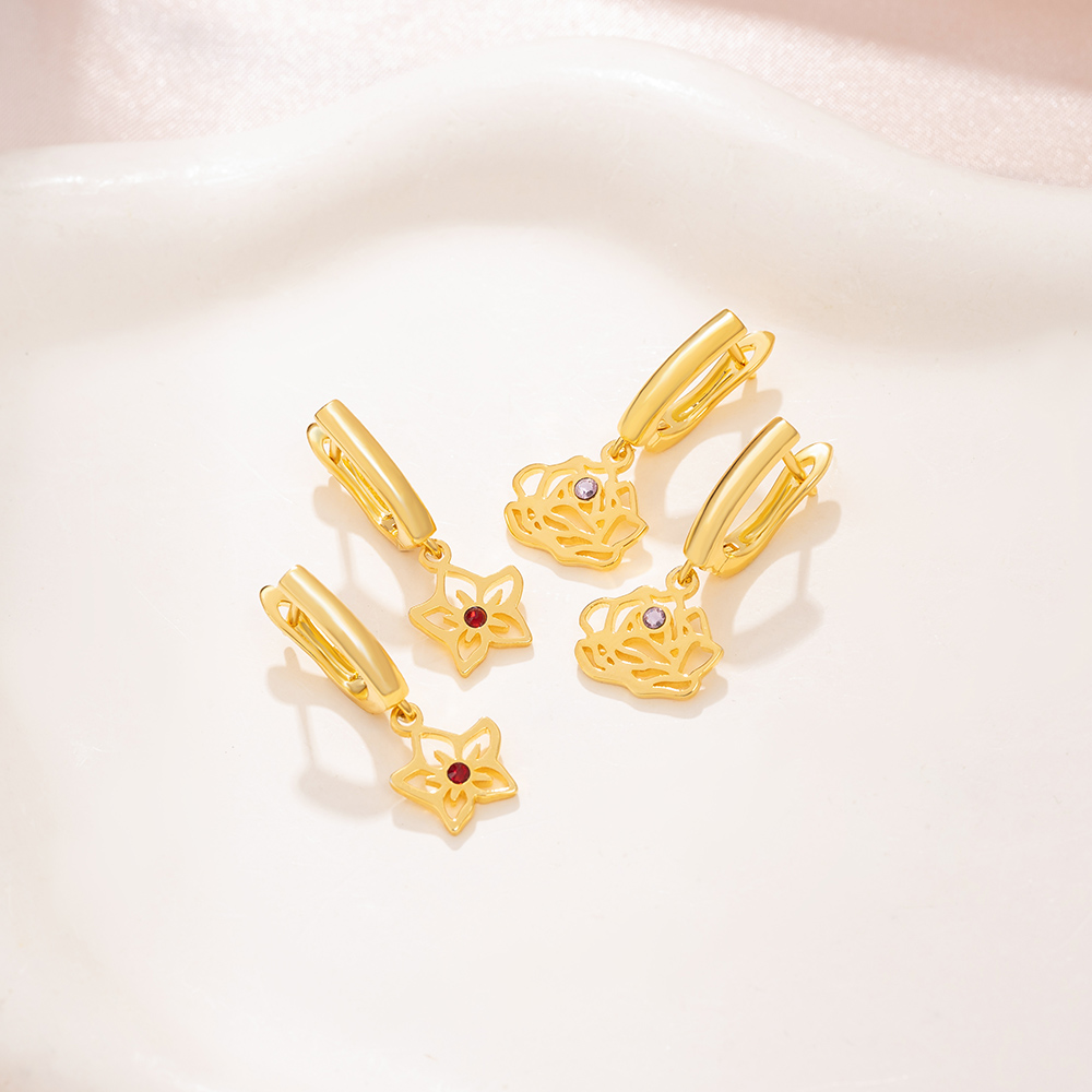 ⛄Buy 2 Free Shipping⛄Gold Birth Flower Earrings with Birthstone, Birth Flower Gift, Custom Floral Jewelry, Birthday Month Flower Earrings, Christmas Gift For Her