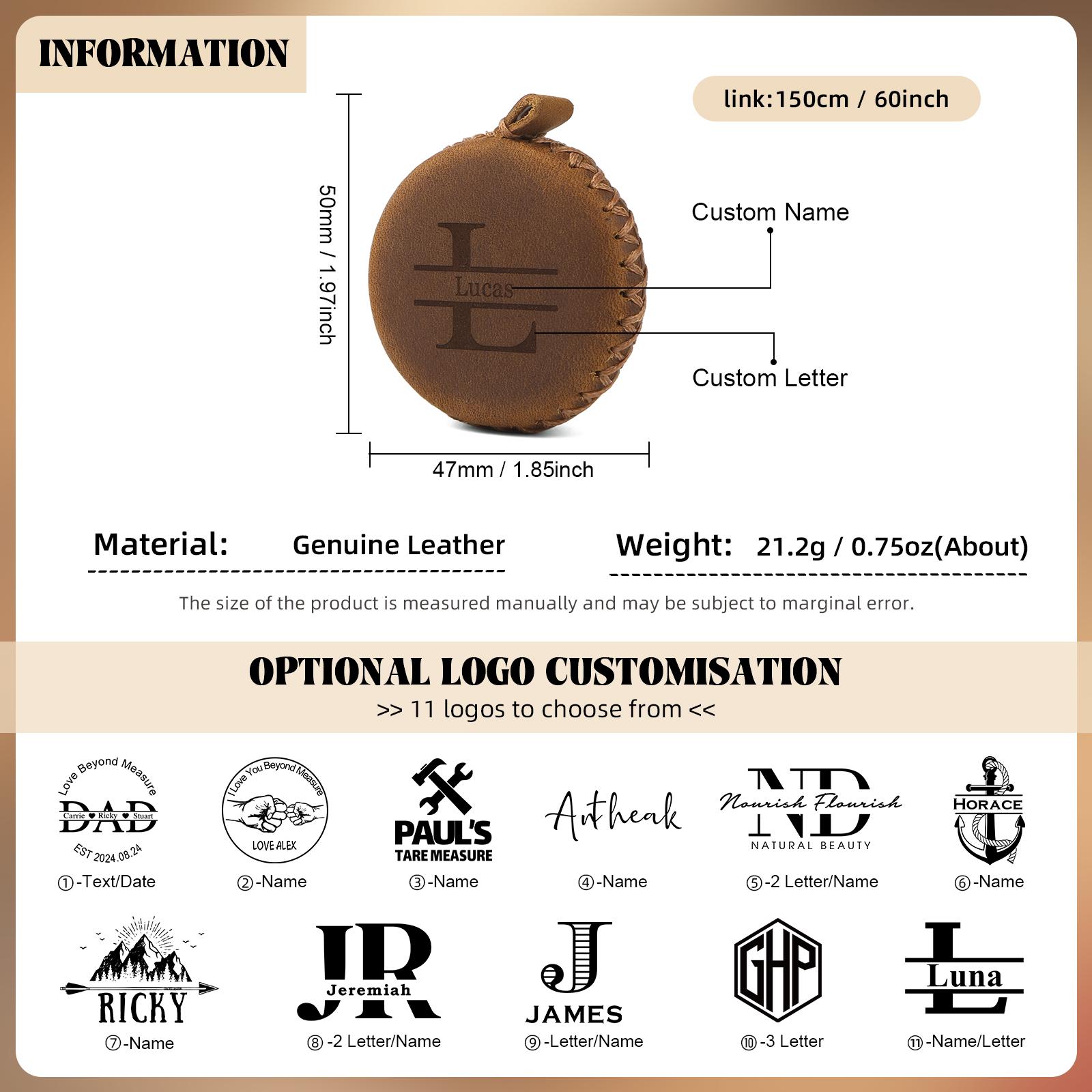 - Leather measure tape is a personalized and stylish practical gift that combines functionality with sophistication. With 11 customizable designs to choose from, this tape measure allows you to add a personal touch by incorporating your name, initials, dates, or text.
