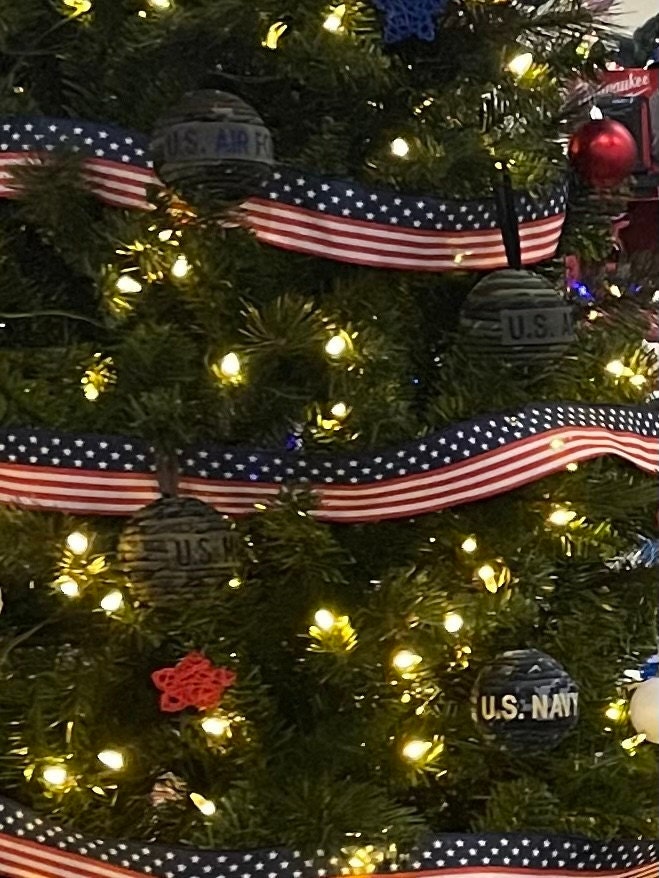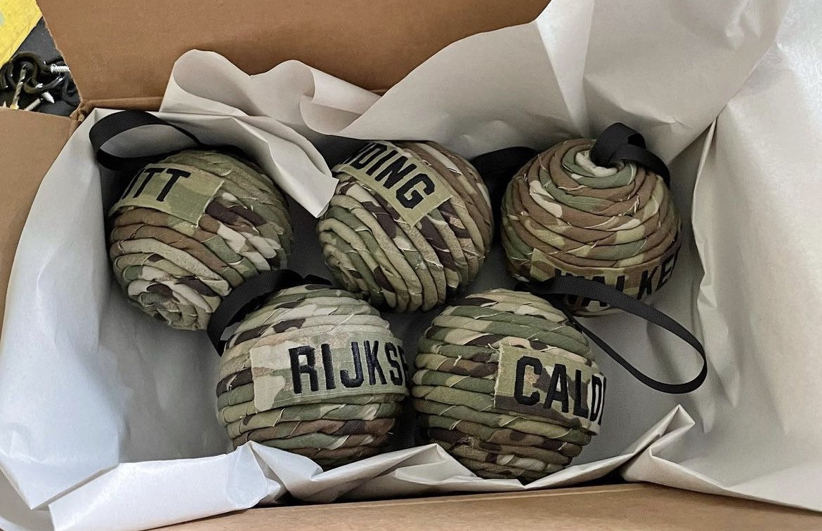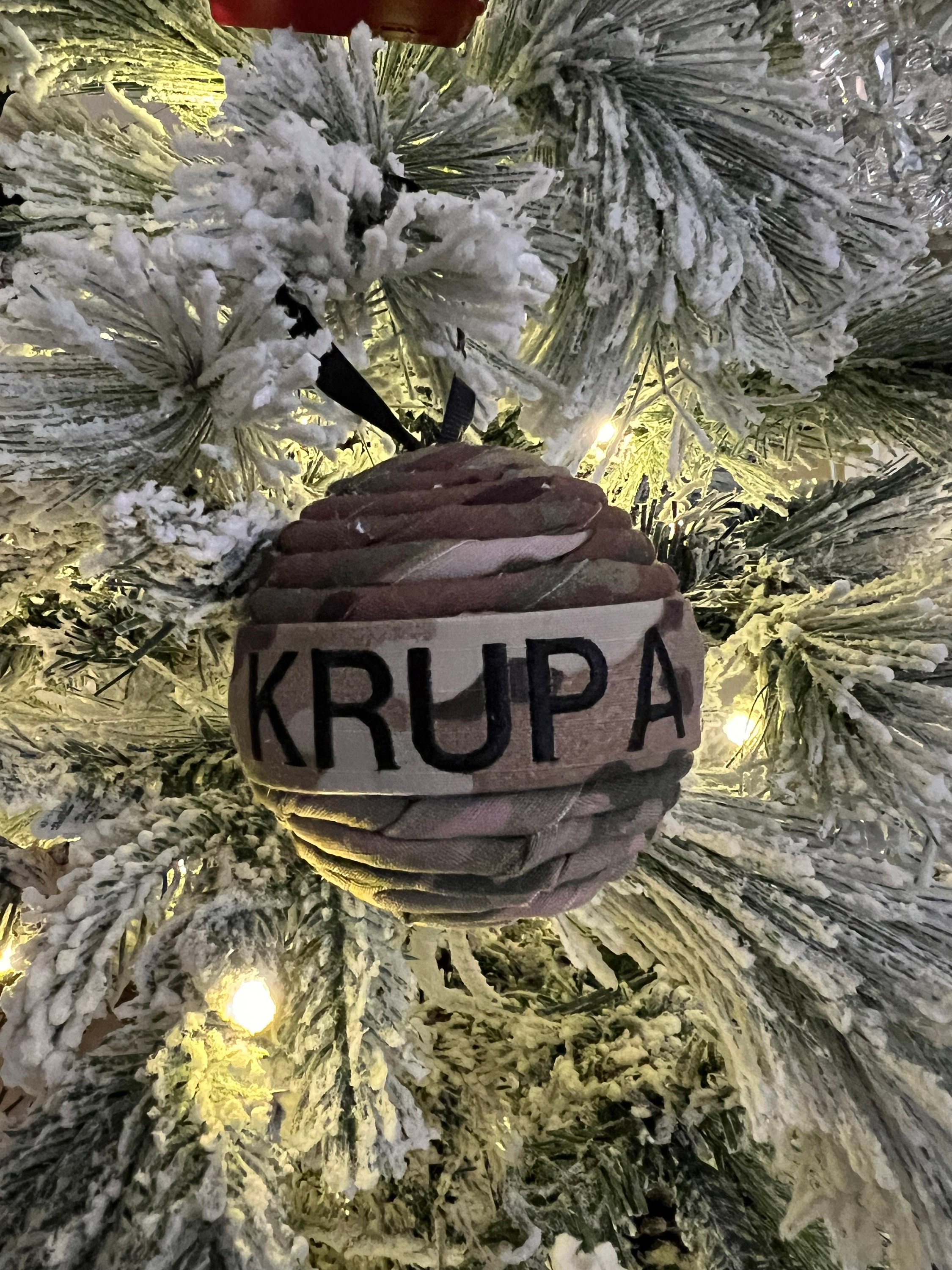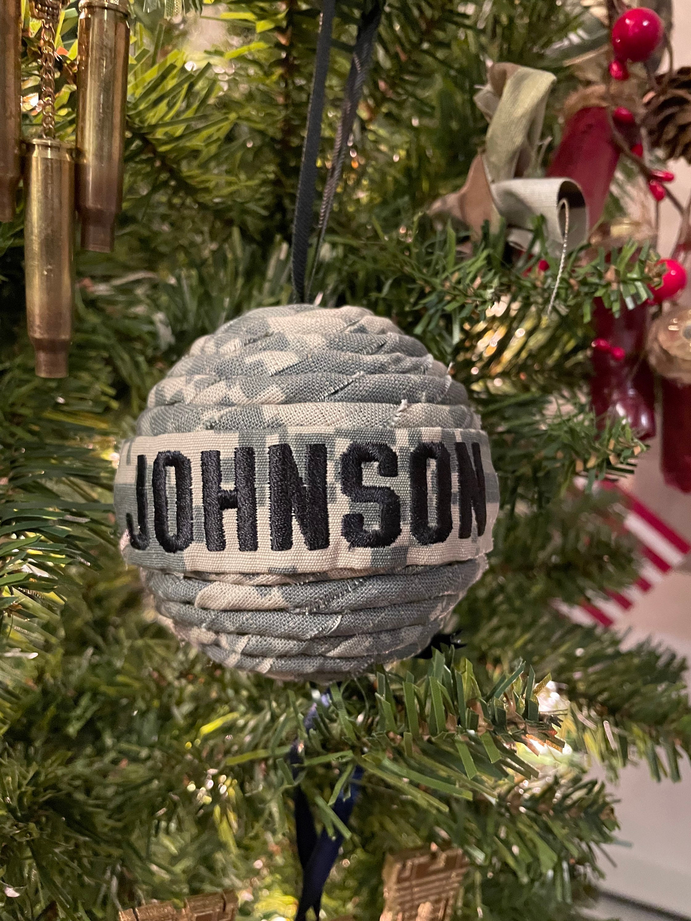 Each ball is handcrafted and unique. Fabric patterns will slightly vary due to cut and application of military fabric.
