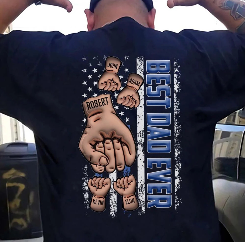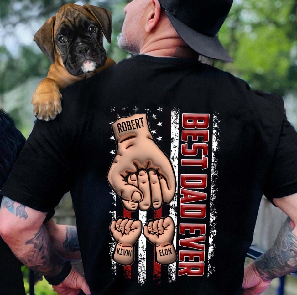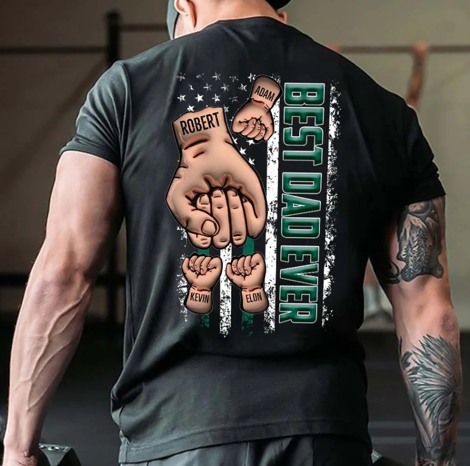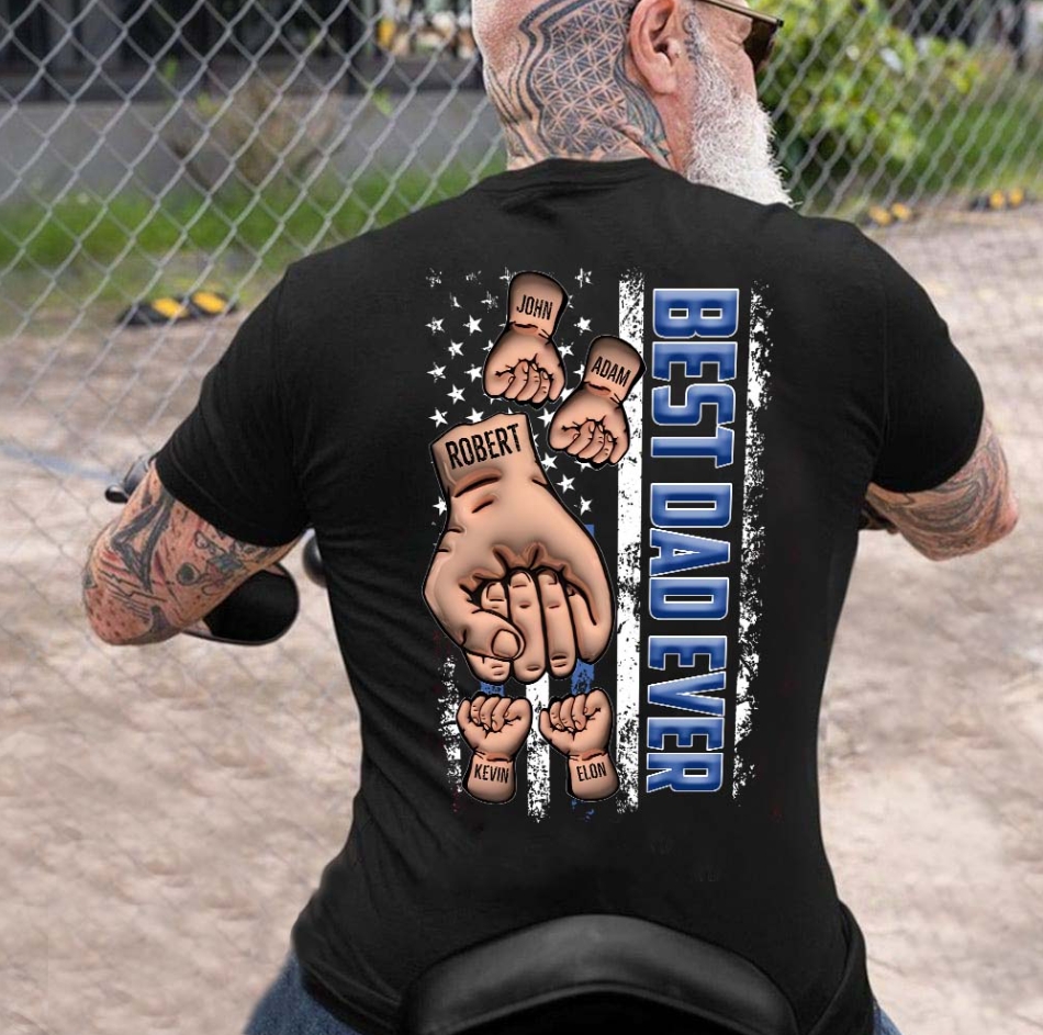 ❤️Personalized Backside T-shirt - Father's Day Gift - Best Dad Ever Fist Bump