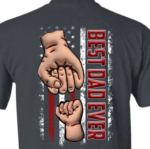 Celebrate Father's Day in style with our custom "Best Dad Ever Fist Bump" T-shirt, designed to make your dad feel truly special. This high-quality shirt features a unique and heartwarming design on the backside, showcasing a memorable fist bump graphic with "Best Dad Ever" boldly displayed above. It’s the perfect gift to show appreciation and love for the most important man in your life.