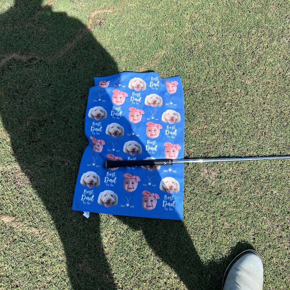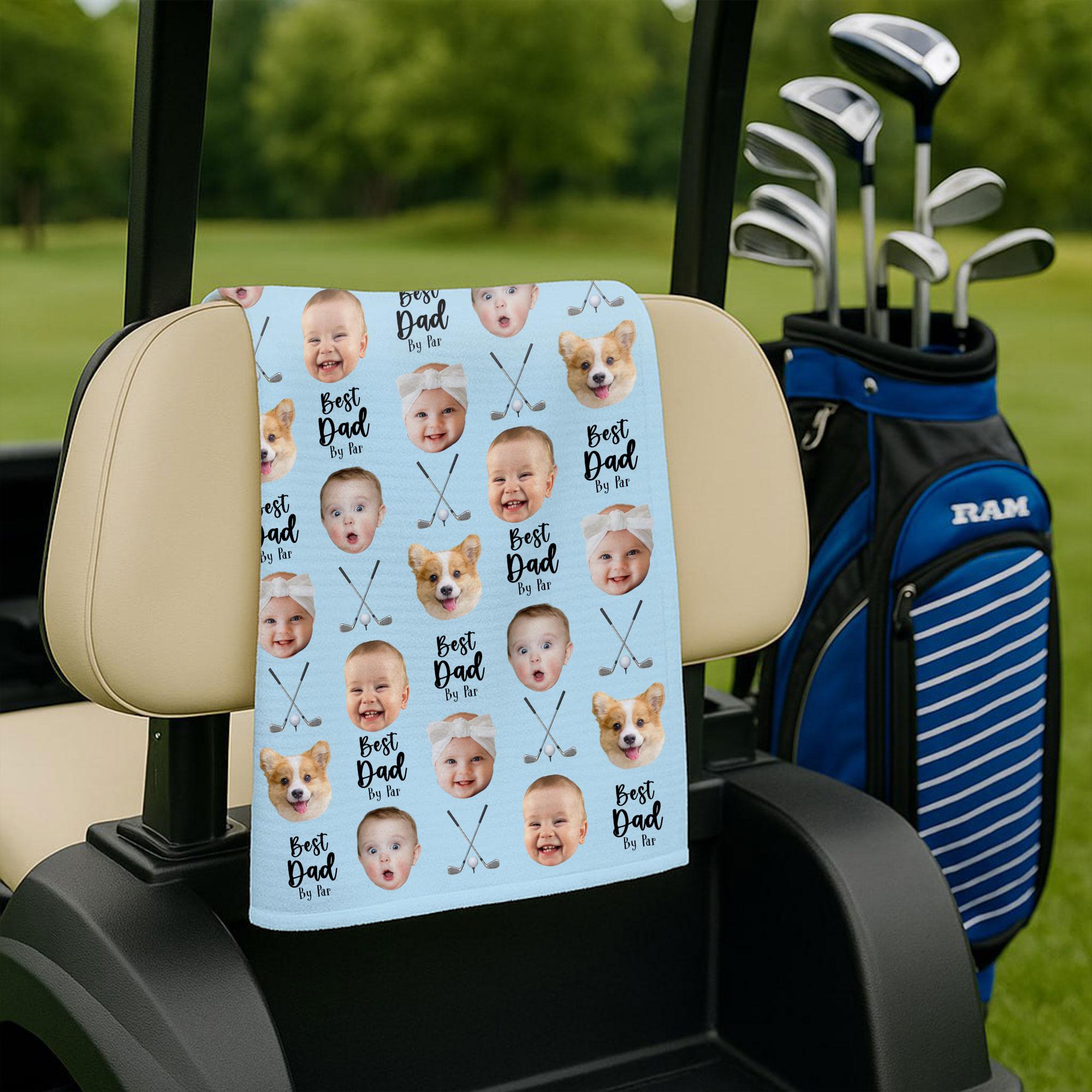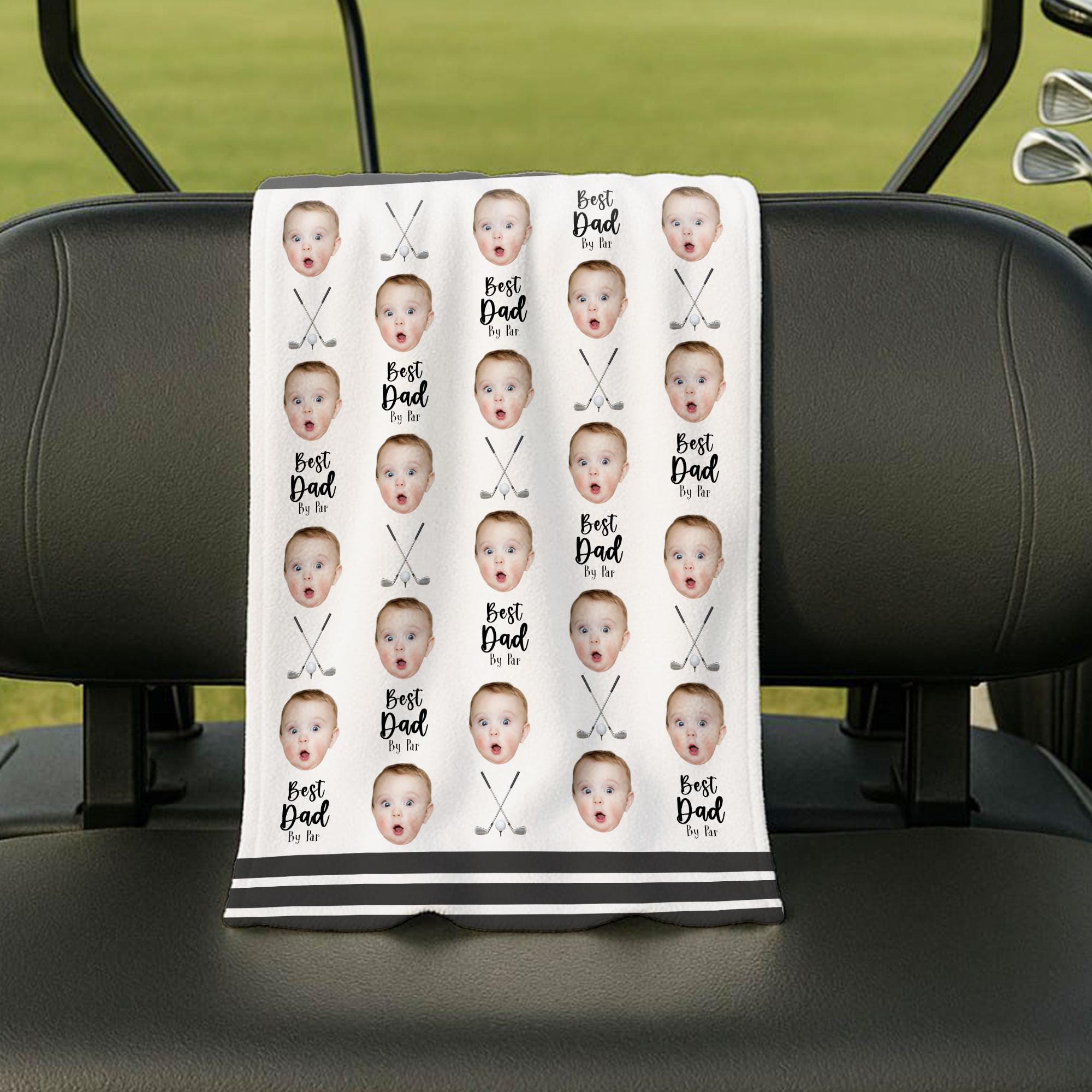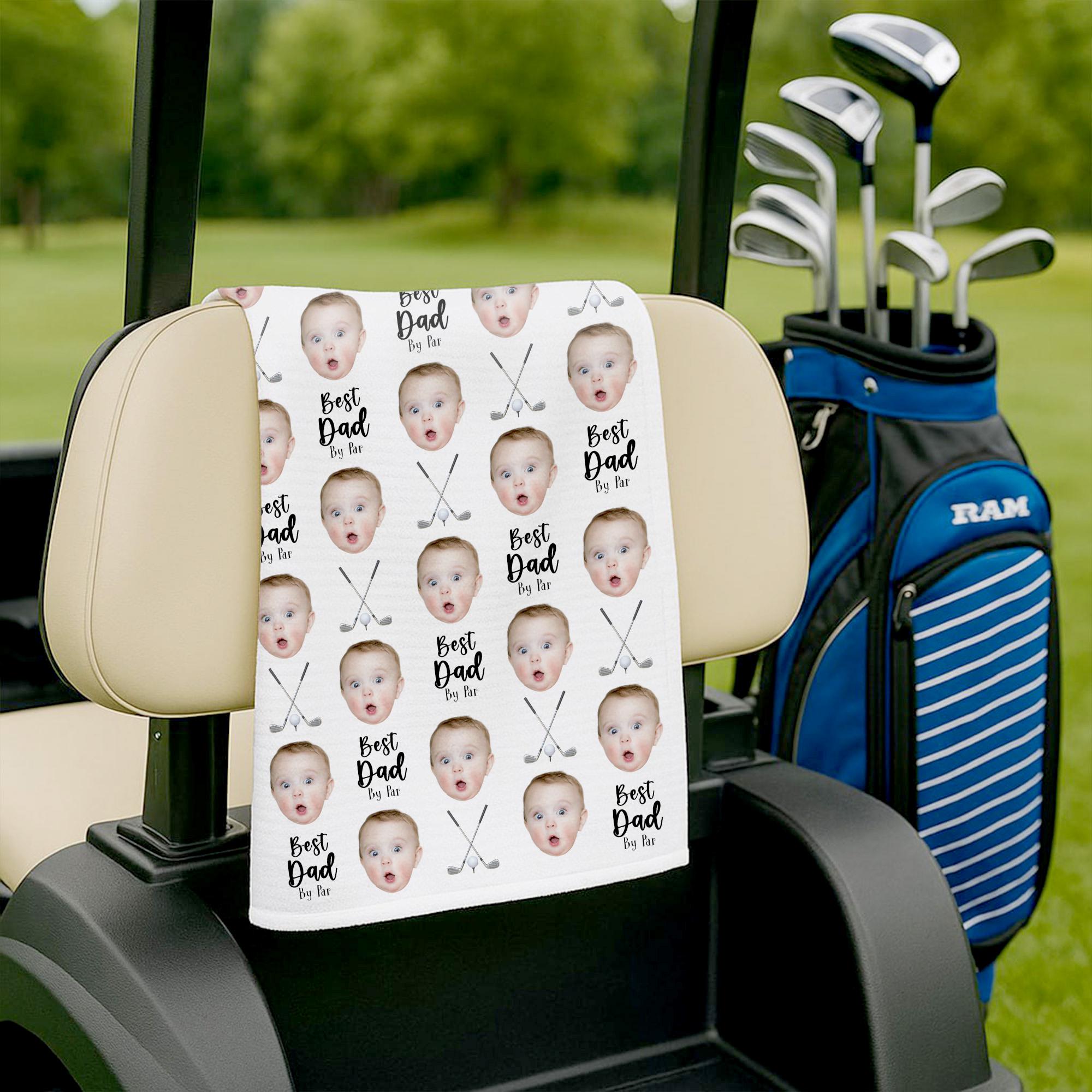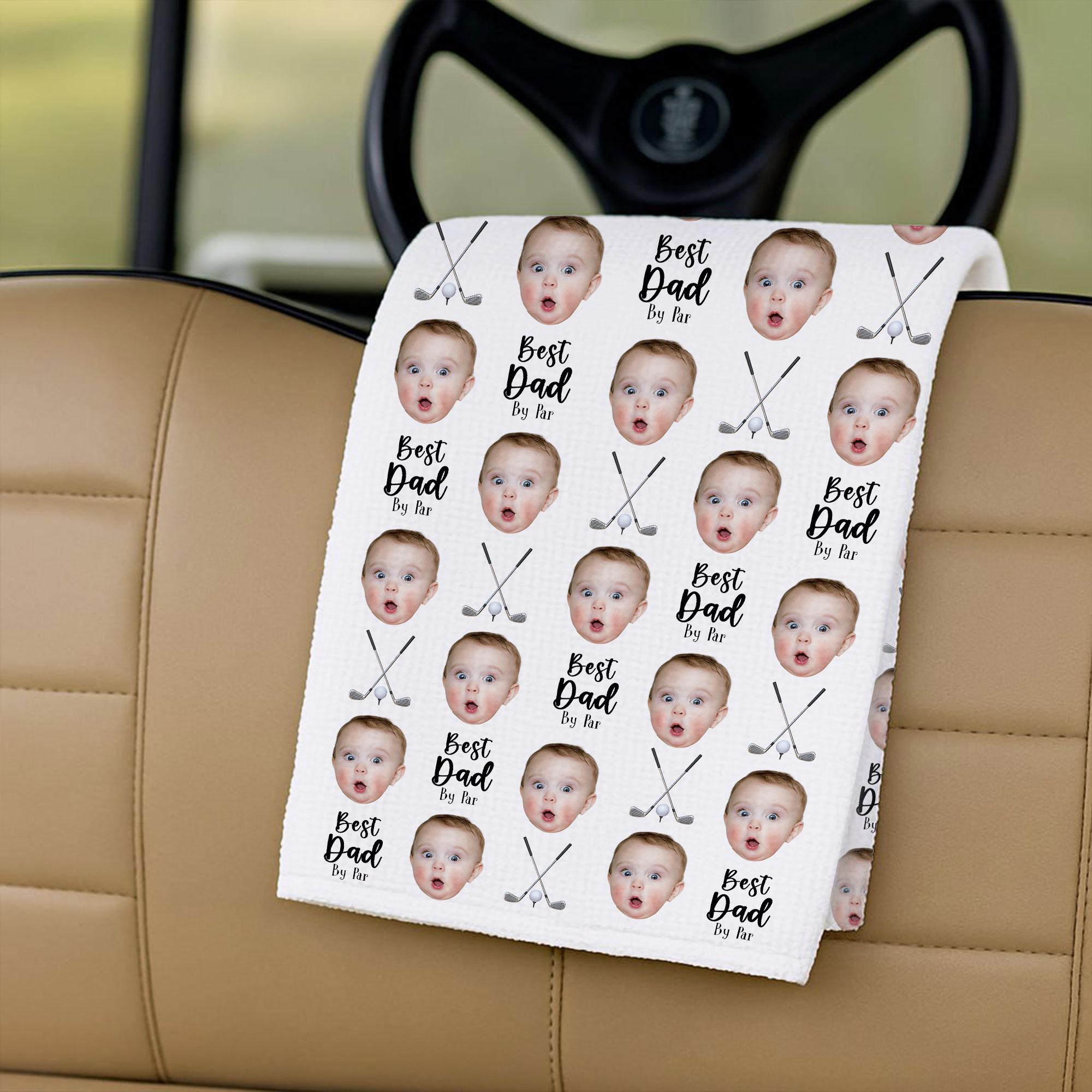 💖Buy 2 Free Shipping💖Personalized Photo Golf Towel Gift for Golf Dad, Baby Face Towel, Funny Best Dad By Par Towel Gift