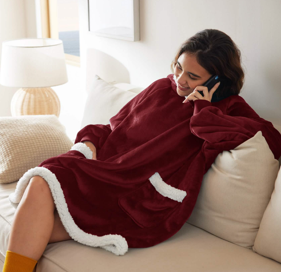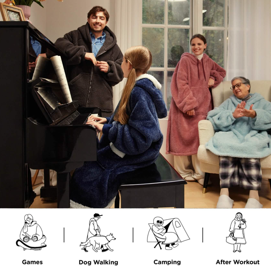 Hands-Free Versatility: Wearable design lets you read, watch TV, or do chores with arms free; deep side pockets store essentials or warm hands, and ribbed cuffs seal out cold air.