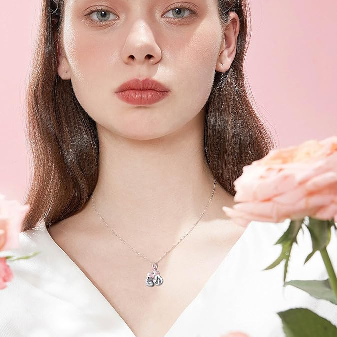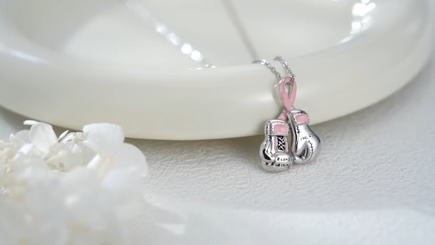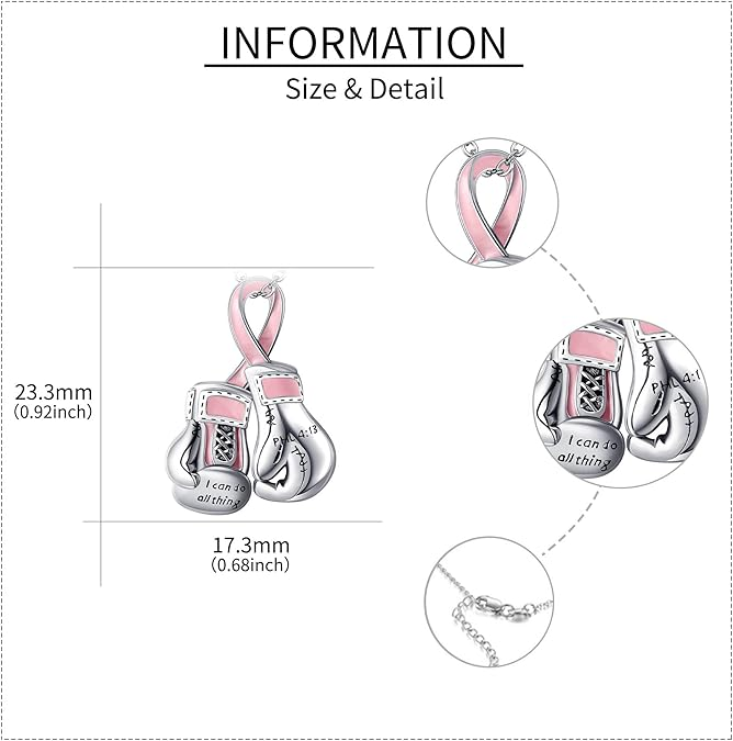 This boxing necklace combines boxing gloves and pink ribbons to symbolize female strength and awakening. Give this necklace to your lover, family, or friends to show them your care and to encourage them that "I can do all things"